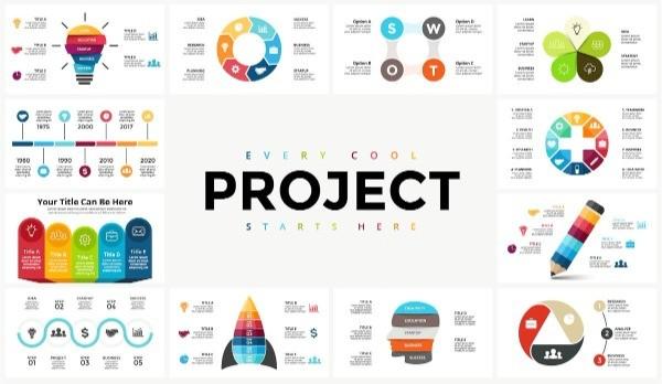 Our slide library is organized into easy to use packs with infographics or complete presentations.